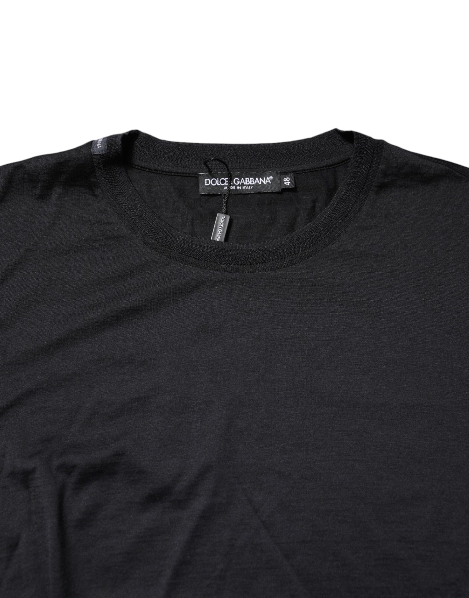 بلوفر رجالي من دولتشي آند غابانا، حرير أزرق داكن، بياقة دائرية