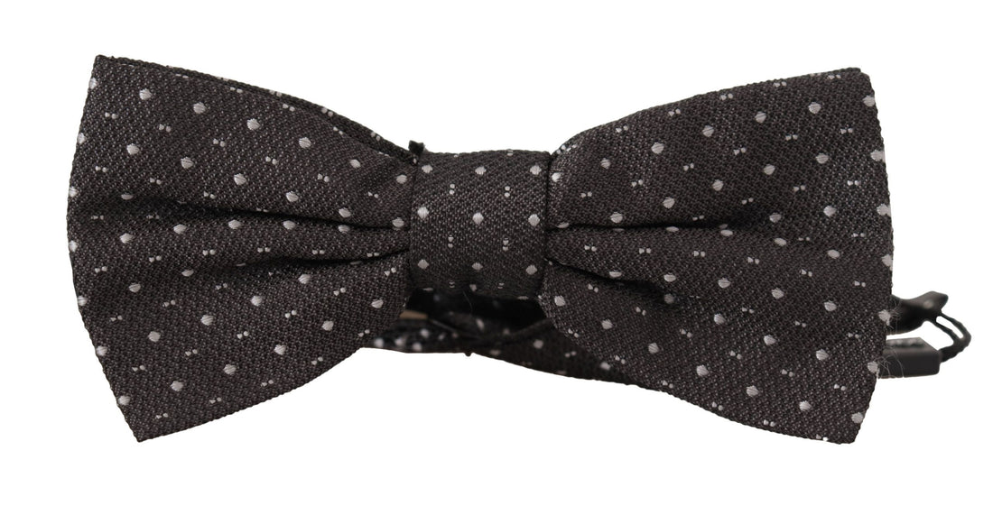 Dolce & Gabbana Gray Silk Polka Dot Adjustable Neck Men Papillon Bow Tie