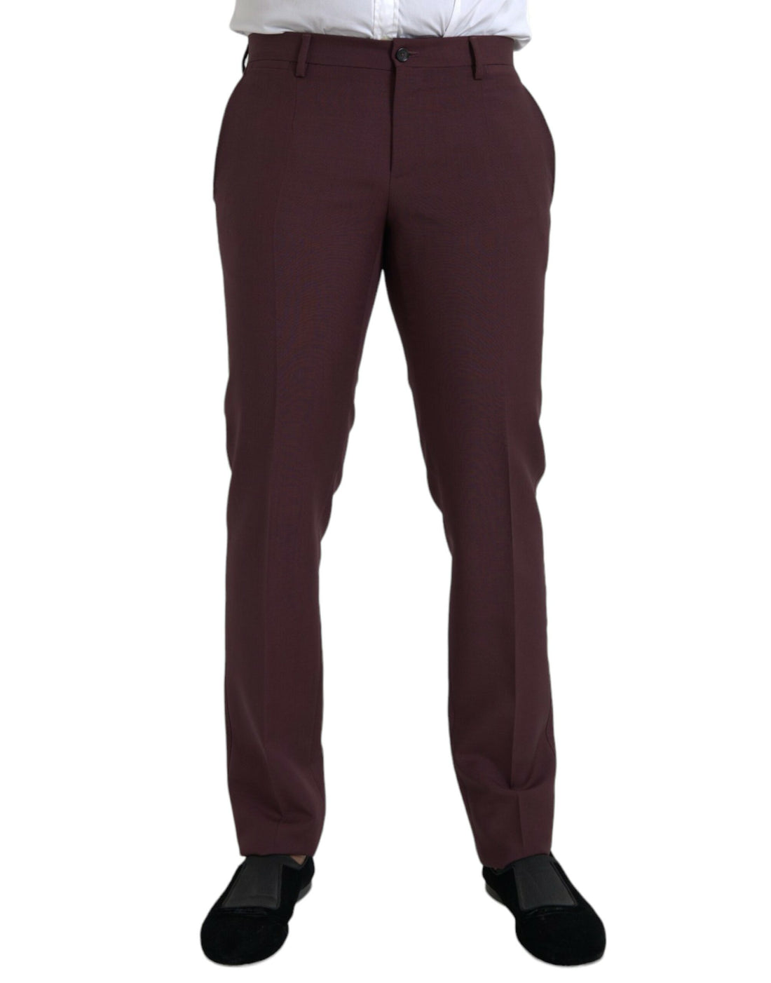 Dolce & Gabbana Maroon Wool Men Slim Fit Dress Pants