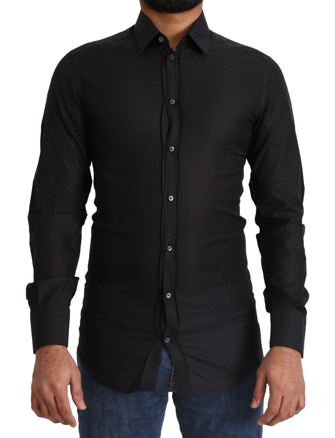 Dolce & Gabbana Black Gold Cotton Slim Fit Dress Mens Shirt