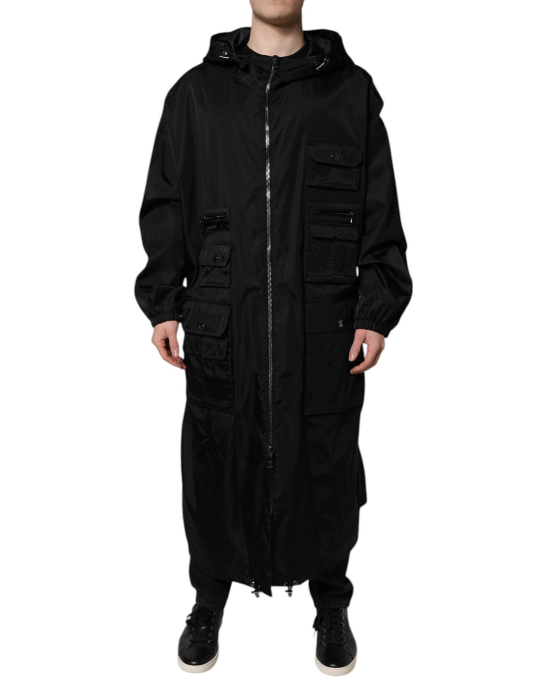 Dolce & Gabbana Black Hooded Long Men Windbreaker Jacket