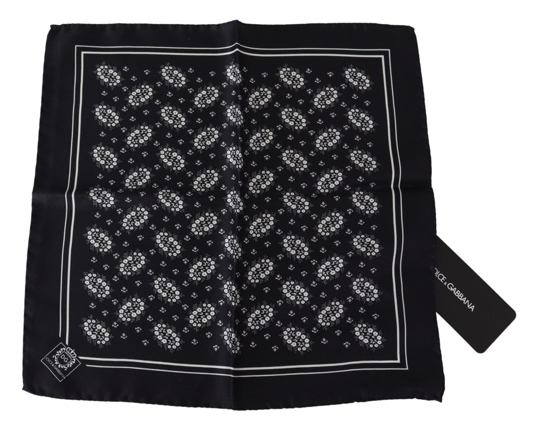 Dolce & Gabbana Black Patterned Square Scarf Silk Handkerchief