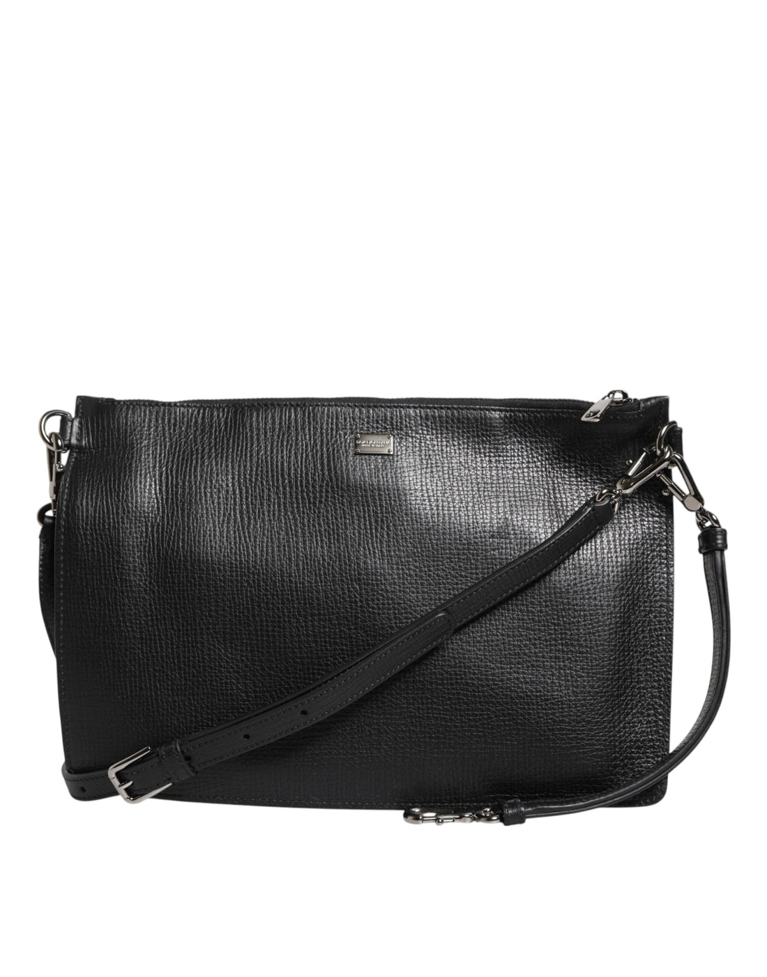 Dolce & Gabbana Black Palmellato Leather Logo Plaque Shoulder Borse Bag