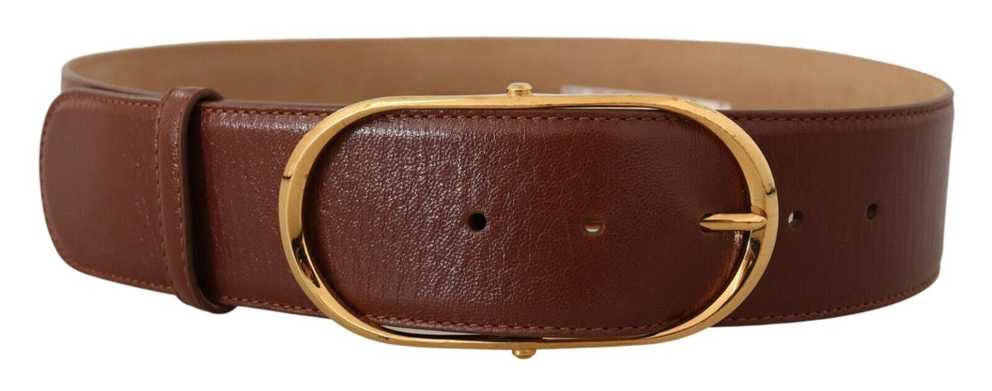 Dolce & Gabbana Brown Leather Gold Metal Oval Buckle Belt