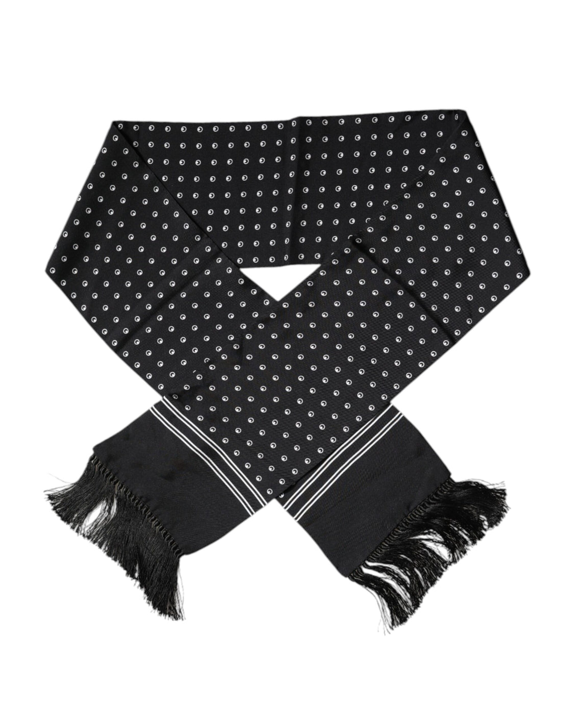 Dolce & Gabbana Black White Polka Dotted Silk Skinny Fringes Scarf