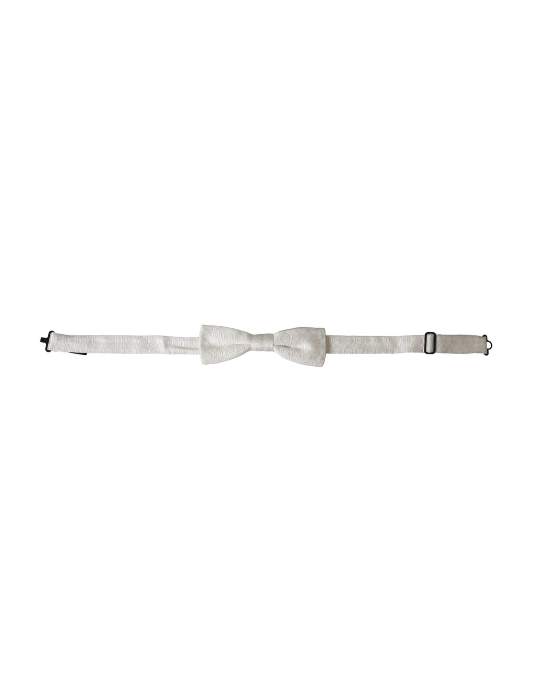 Dolce & Gabbana White Silk Patterned Adjustable Neck Men Papillon Bow Tie
