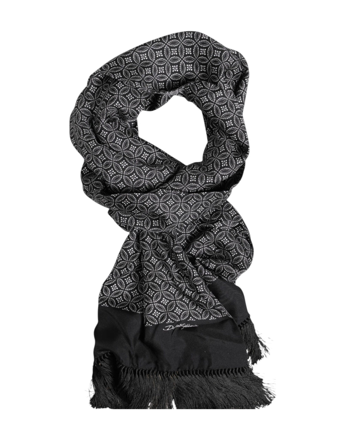 Dolce & Gabbana Black Silk Printed Fringes Men Foulard Scarf