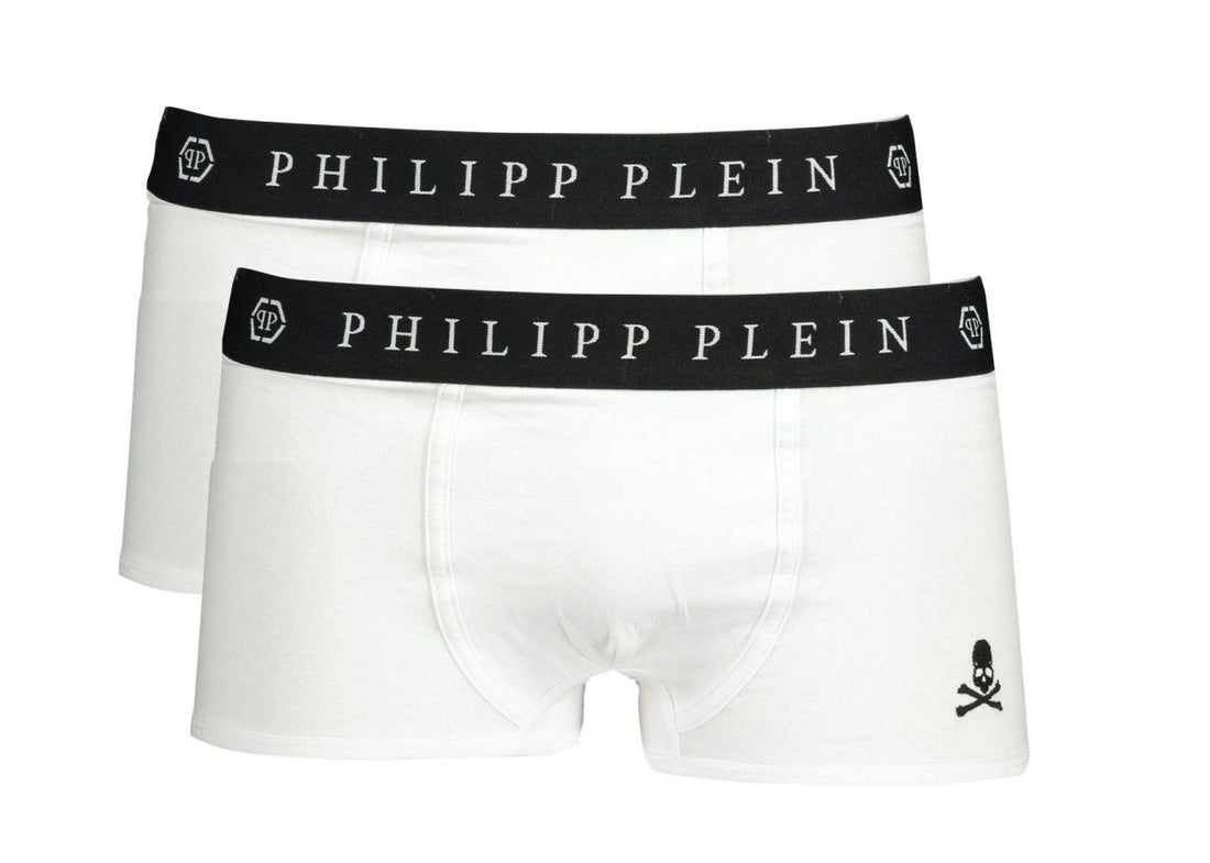 Stylish white cotton boxer shorts for men Elasticized boxers with the brands logo on the...