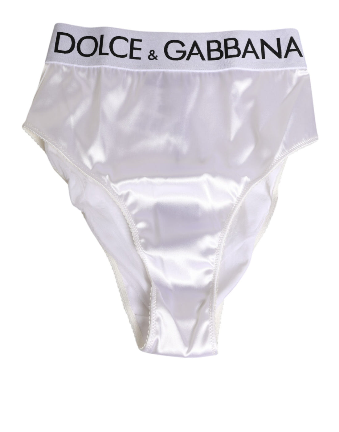 Dolce & Gabbana White Satin High-Waist Brief Logo Women Underwear