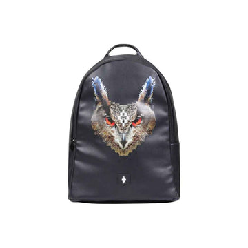 The COUNTY OF MILAN men’s backpack, model COMAF250116, stands out for its contemporary and striking design. Made entirely from high-quality polyurethane, it offers durability and easy maintenance for long-lasting use. The centerpiece of the design is a stylized owl head print on the front, enriched with modern graphic details and intense eyes, giving the backpack a bold and original character. Featuring a practical zip closure and a top handle for hand carrying, it also has adjustable shoulder straps for maximum comfort. Perfect for urban life, work, or leisure, this backpack combines style and functionality, making it the ideal accessory for those who love to stand out.