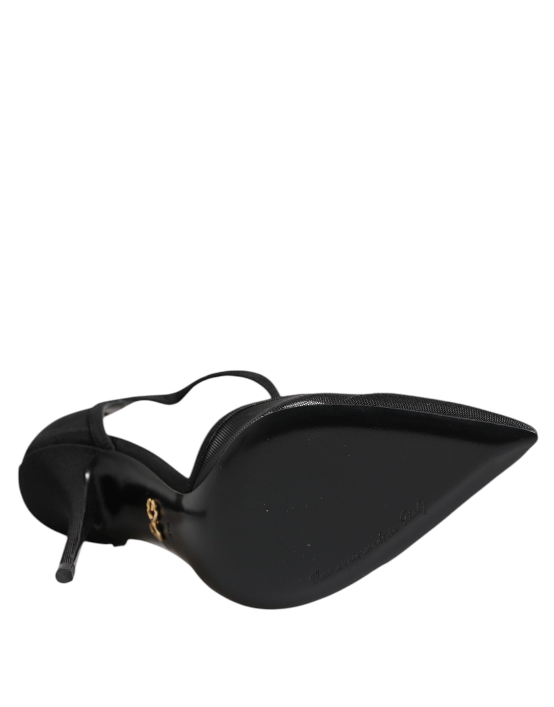 Dolce & Gabbana Black Mesh T-strap Stiletto High Heels Shoes